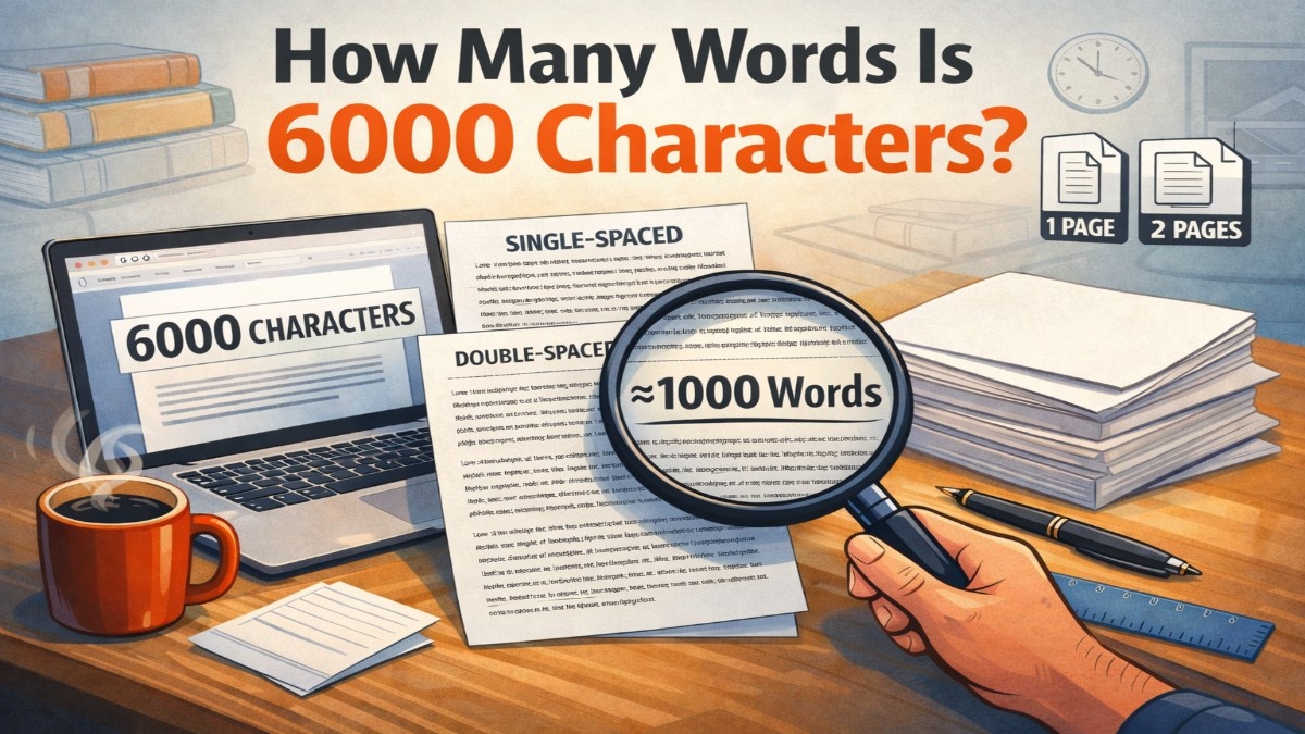 6000 characters equals approximately 900–1000 words with spaces. Learn exact word count conversions with examples for essays, SEO content, and writing tasks.